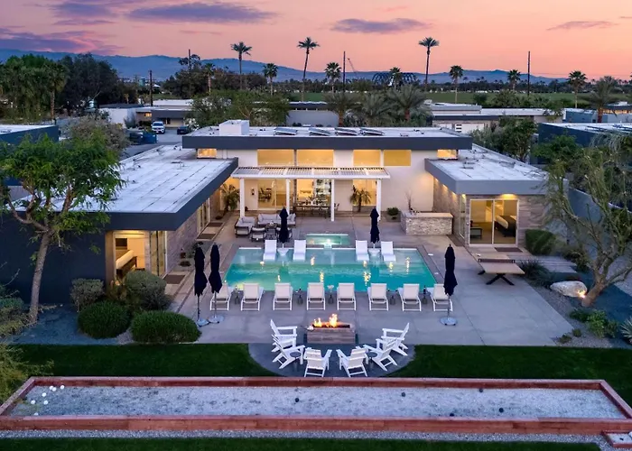 La Sleeps 28 Putting Green Bocce Ball Near Coachella Polo Villas Sol está equipada con un lavavajillas, cafetera/tetera y un horno, además de una cocina bien equipada. Los huéspedes pueden cenar en el restaurante Rocs Firehouse Grill At The Cantina, situado bastante cerca de este lugar. Los huéspedes pueden llegar fácilmente al aeropuerto Internacional de Palm Springs, situado a 40 km de este establecimiento.